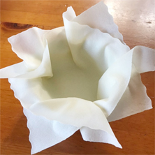強く抑えると破れやすいので、少しずつ重ねて敷き詰める。子どものお手伝いポイント