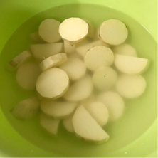 さつまいもは皮をむき、適度な大きさに切り水にさらす。