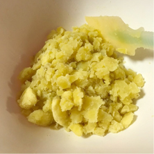 さつまいもをつぶすのを手伝ってもらいましょう。