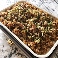 ごはん、焼きそば麺の順にくわえてその都度ざっくりと炒め合わせる。