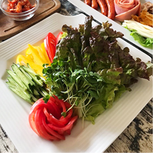サニーレタス・レタス・きゅうり・カイワレ・パプリカ・チーズ・ウインナー・キムチ・卵焼き・焼肉・お好みでマヨネーズ